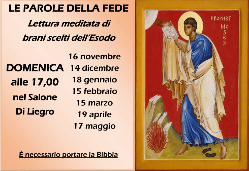 Comincia il 16 novembre un nuovo percorso per meditare la Parola di Dio. Gli incontri saranno su base mensile con brani tratti dal libro dell'Esodo.